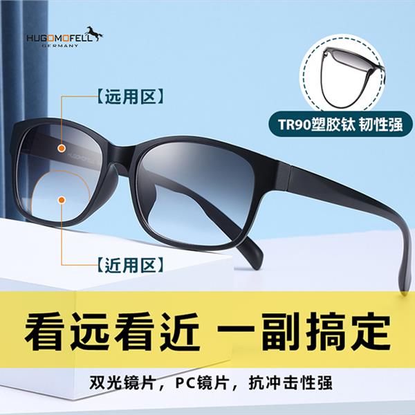 HUGOMFELL运动老花镜LH2206隐形双光 防蓝光 防紫外线 防撞击