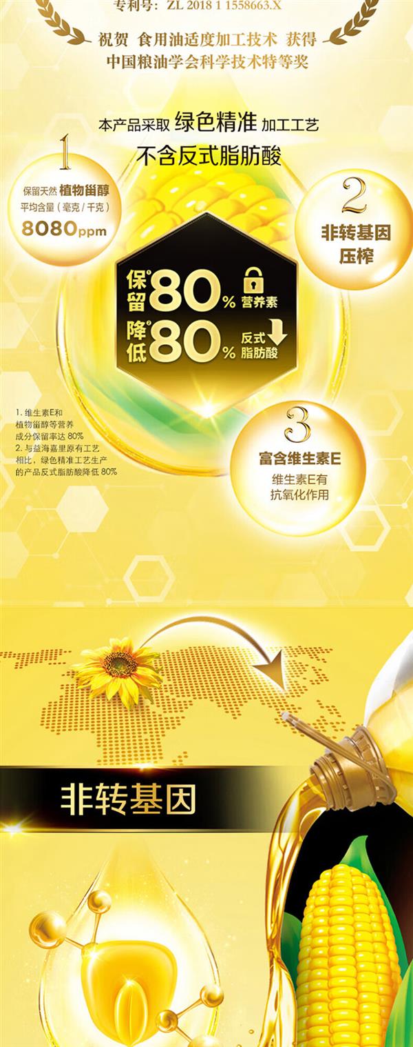 【健康好油X6瓶】金龙鱼阳光零反式脂肪甾醇玉米油1.5L /非转/压榨/特级